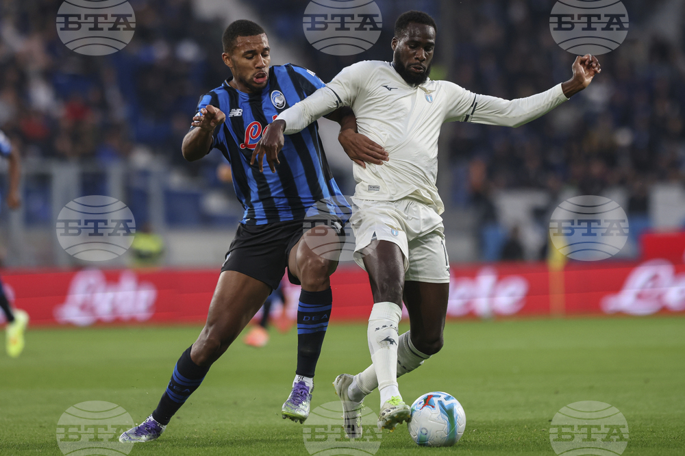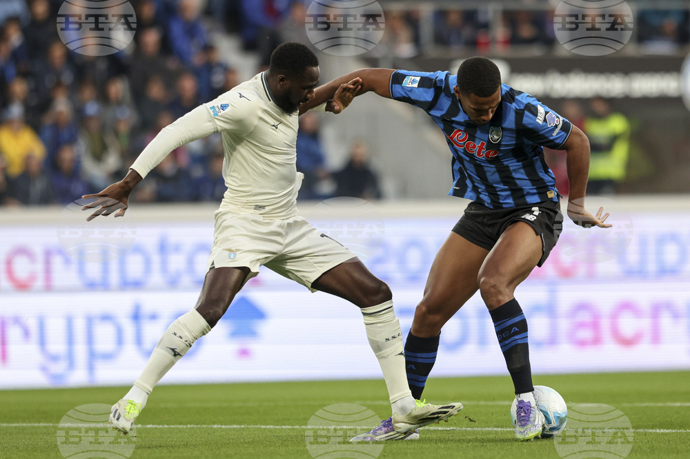 Lazio's Boulaye Dia, left, and Atalanta's Isak Hien in action during the Serie A soccer match between Atalanta B.C. and S.S. Lazio in Bergamo, Italy, Sunday Oct. 19, 2025. (Stefano Nicoli/LaPresse via AP)