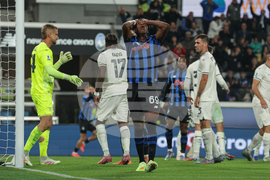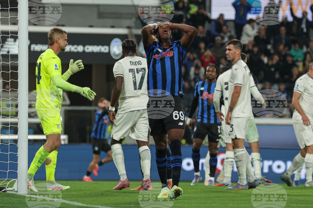 Atalanta's Honest Ahanor gestures after a missed chance on goal, during the Serie A soccer match between Atalanta B.C. and S.S. Lazio in Bergamo, Italy, Sunday Oct. 19, 2025. (Stefano Nicoli/LaPresse via AP)