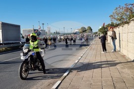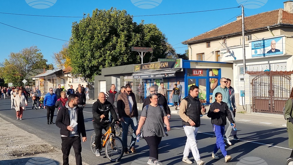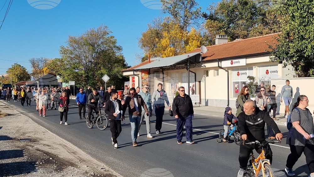 Село Труд (19 октомври 2025 ) Жителите на с. Труд блокираха временно движението по Карловско шосе. Те продължават безсрочните си протести и за четвърта поредна неделя протестираха с настояване за реално възстановяване на автобусна линия №1 и нормална транспортна връзка с Пловдив. Събралите се край чешма „Гергана“ протестиращи потеглиха пеша по Карловско шосе до кръгово кръстовище в близост до разклона за с. Строево. Кръговото кръстовище бе блокирано за 10-20 минути и там протестиращите изслушаха химна на България и изиграха едно право хоро. По време на протеста полицейски екипи осигуряваха безопасността на движението и пренасочваха трафика по обходен маршрут от жп прелеза в с. Труд към същото кръгово кръстовище. Жителите на Труд и още 5 села (Рогош, Скутаре, Трилистник, Маноле и Манолско Конаре) от община Марица настояват за прозрачно, справедливо и устойчиво решение на транспортната криза, която засяга хиляди хора – работещи, ученици и възрастни. Според тях проблемът е липсата на транспортна политика за селата в община Марица. На снимката (от ляво надясно): адвокат Атанас Атанасов и съпредседателят на Сдружение "Бъдеще за село Труд" Станимир Тончев.