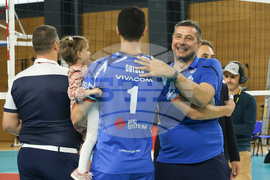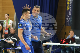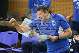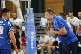 София (19 октомври 2025) В столичната зала "Левски София", се играе финал за Суперкупата на България между Левски София и Локомотив Авиа (Пловдив). На снимката: старши треньорът на волейболния отбор "Локомотив Авиа" (Пловдив) Найден Найденов.