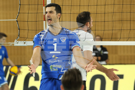 София (19 октомври 2025) В столичната зала "Левски София", се играе финал за Суперкупата на България между Левски София и Локомотив Авиа (Пловдив). На снимката: Матей Казийски.