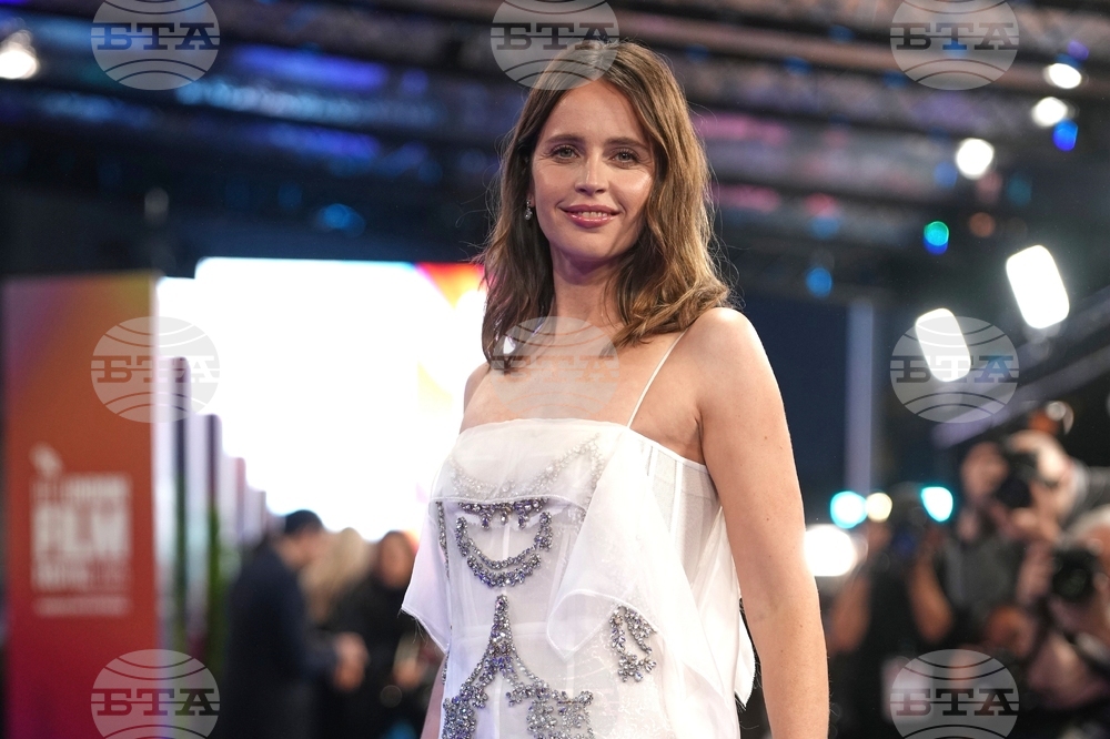 Felicity Jones poses for photographers upon arrival at the premiere of the film "100 Nights of Hero" which closes the London film festival in London, Sunday, Oct. 19, 2025. (Photo by Scott A Garfitt/Invision/AP)