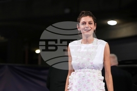 Markella Kavenagh poses for photographers upon arrival at the premiere of the film "100 Nights of Hero" which closes the London film festival in London, Sunday, Oct. 19, 2025. (Photo by Scott A Garfitt/Invision/AP)