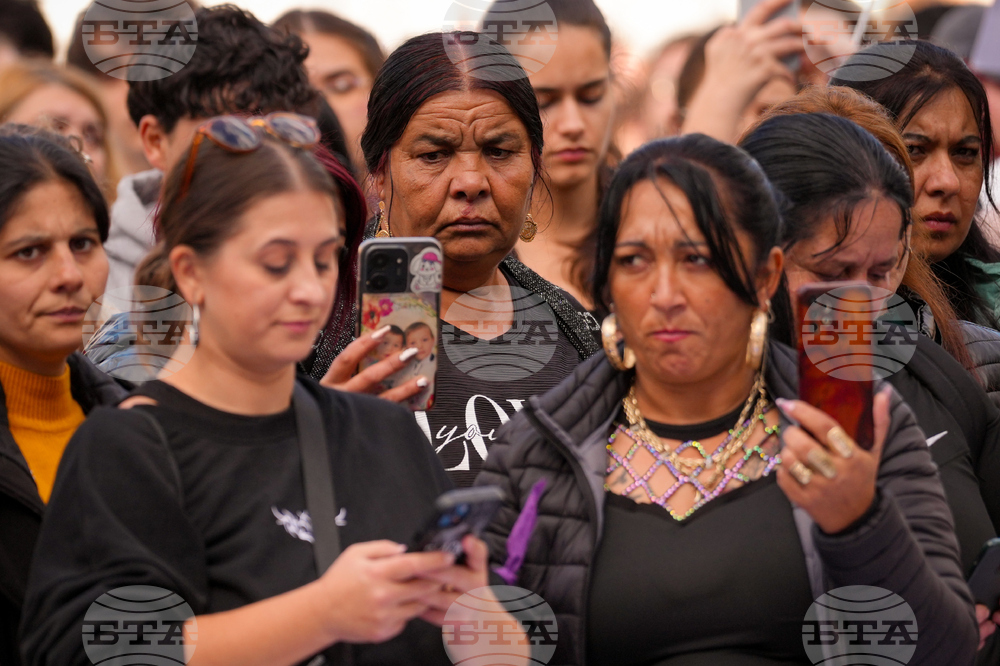 A woman cries during a protest aiming to raise awareness of the violence and prejudice against women in Romanian society, in Bucharest, Romania, Sunday, Oct. 19, 2025. (AP Photo/Vadim Ghirda)