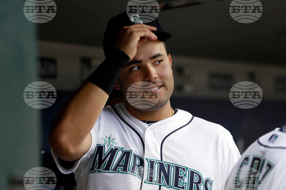 FILE - Seattle Mariners' Jesus Montero flips a baseball before a baseball game against the Chicago White Sox during a baseball game on Aug. 22, 2015, in Seattle. (AP Photo/John Froschauer, file)