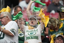 Fans cheer before an NFL football game between the Green Bay Packers and the Arizona Cardinals Sunday, Oct. 19, 2025, in Glendale, Ariz. (AP Photo/Ross D. Franklin)
