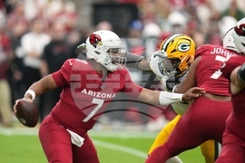 Arizona Cardinals' Jacoby Brissett throws during the first half of an NFL football game against the Green Bay Packers Sunday, Oct. 19, 2025, in Glendale, Ariz. (AP Photo/Rick Scuteri)