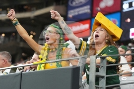 Green Bay Packers fans cheer during the first half of an NFL football game against the Arizona Cardinals Sunday, Oct. 19, 2025, in Glendale, Ariz. (AP Photo/Rick Scuteri)