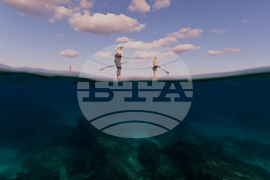People paddle board in the Mediterranean Sea in the Gador Sea and Nature Reserve in Hadera, Israel, after a ceasefire agreement between Israel and Hamas, Saturday, Oct. 18, 2025. (AP Photo/Ariel Schalit)