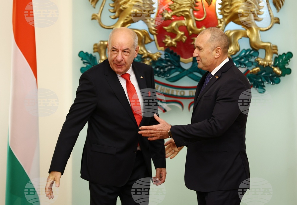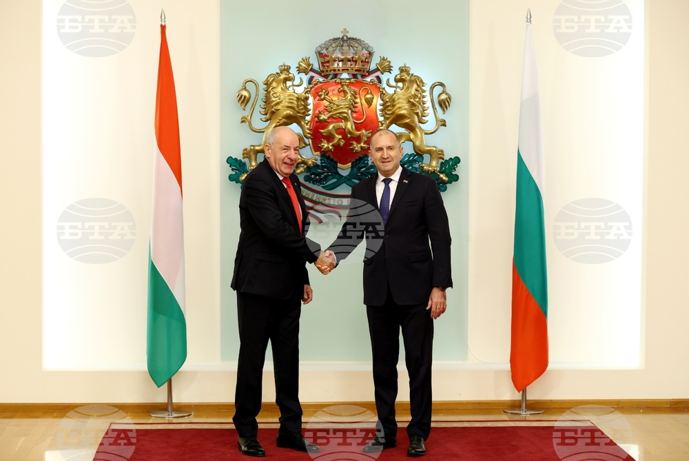 София (20 октомври 2025) Президентът на Унгария Тамаш Шуйок (вляво) е на официално посещение в България по покана на българския държавен глава Румен Радев. На „Дондуков“ 2 президентите на България и Унгария провеждат съвместна среща.