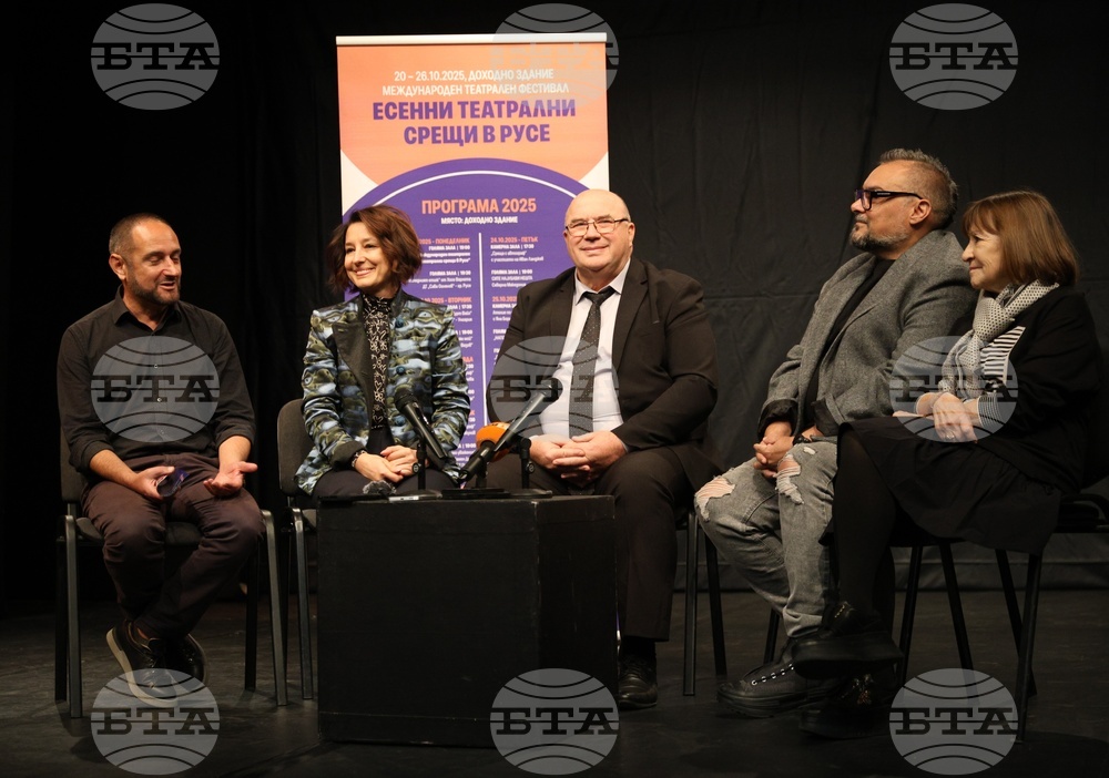 Русе (20 октомври 2025) Международният театрален фестивал „Есенни театрални срещи в Русе” започва днес в крайдунавския град. Той се организира за втора поредна година и ще продължи до 26 октомври тази година. Постановки на български и чуждестранни театри, срещи с автографи и творческо ателие включва програмата на фестивала, който се организира с подкрепата на Министерството на културата, Община Русе и Национален фонд „Култура”. На снимката: директорът на Драматичен театър „Сава Огнянов” - Русе Боян Иванов, организаторът и селекционер на Международния театрален фестивал „Есенни театрални срещи в Русе”