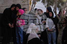Palestinians mourn during the funeral of people who were killed in an Israeli military strike on Sunday, at Awda Hospital, in Nuseirat, in the central Gaza Strip, Monday, Oct. 20, 2025. (AP Photo/Abdel Kareem Hana)