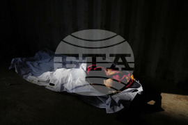 The body of 4-year-old Palestinian, Ahmed Weshah lies next to that of his mother Afaf Abu Jahjouh, 28, who were both killed in an Israeli military strike on Sunday, before their funeral at Awda Hospital, in Nuseirat, in the central Gaza Strip, Monday, Oct. 20, 2025. (AP Photo/Abdel Kareem Hana)