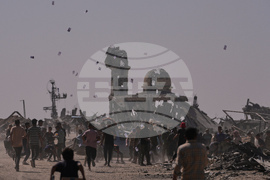 Palestinians collect leaflets dropped by an Israeli drone warning people to stay away from the so-called yellow line in Khan Younis, in the southern Gaza Strip, Monday, Oct. 20, 2025. (AP Photo/Jehad Alshrafi)