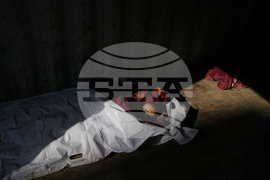 The body of 4-year-old Palestinian, Ahmed Weshah lies next to that of his mother, Afaf Abu Jahjouh, 28, who were both killed in an Israeli military strike on Sunday, before their funeral at Awda Hospital, in Nuseirat, in the central Gaza Strip, Monday, Oct. 20, 2025. (AP Photo/Abdel Kareem Hana)