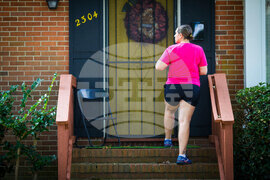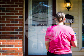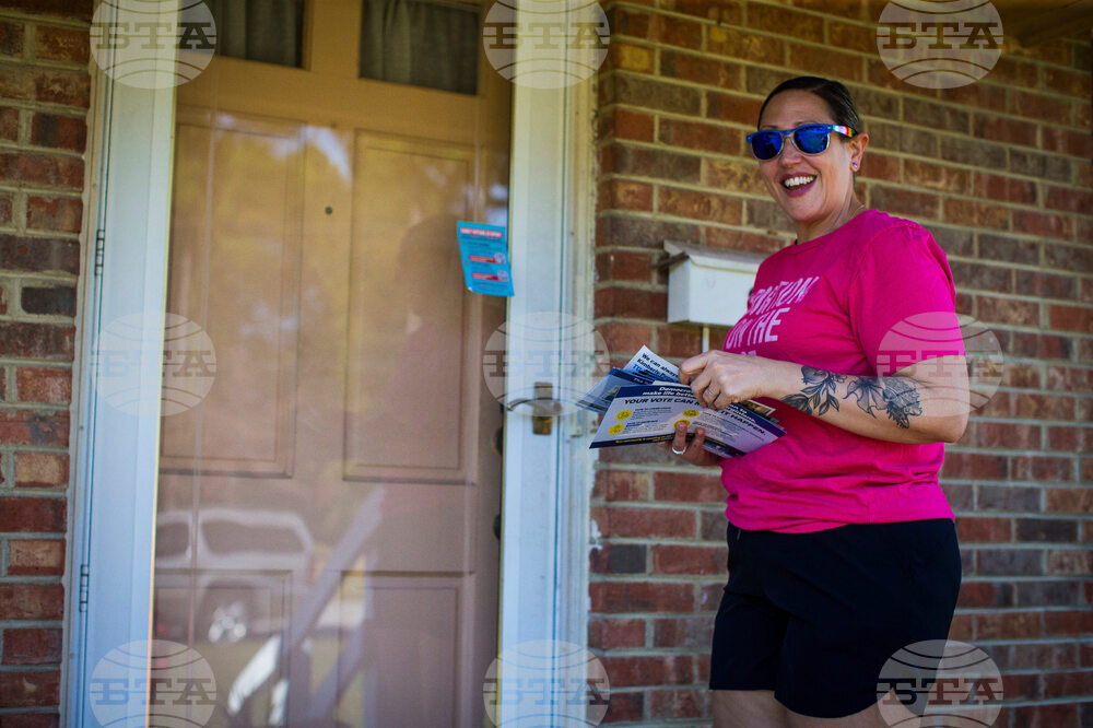 Rae Pickett, who is Communication Director for Planned Parenthood Advocates of Virginia, campaigns for Abigail Spanberger in the governor's race, Oct. 19, 2025 in Petersburg, Va. (AP Photo/John Clark)