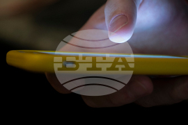 FILE - A man uses a cell phone in New Orleans, Aug. 11, 2019. (AP Photo/Jenny Kane, File)