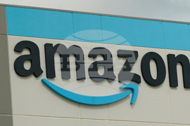 FILE - The Amazon logo is pictured at the Amazon Robotic Sorting Fulfillment Center in Madison County, Miss., Aug. 11, 2022. (AP Photo/Rogelio V. Solis, File)