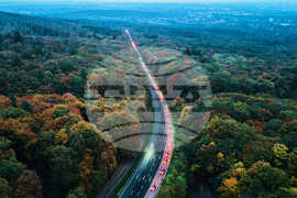 Cars drive through a forest of the Taurus region to Frankfurt, Germany, early Monday, Oct. 20, 2025. (AP Photo/Michael Probst)