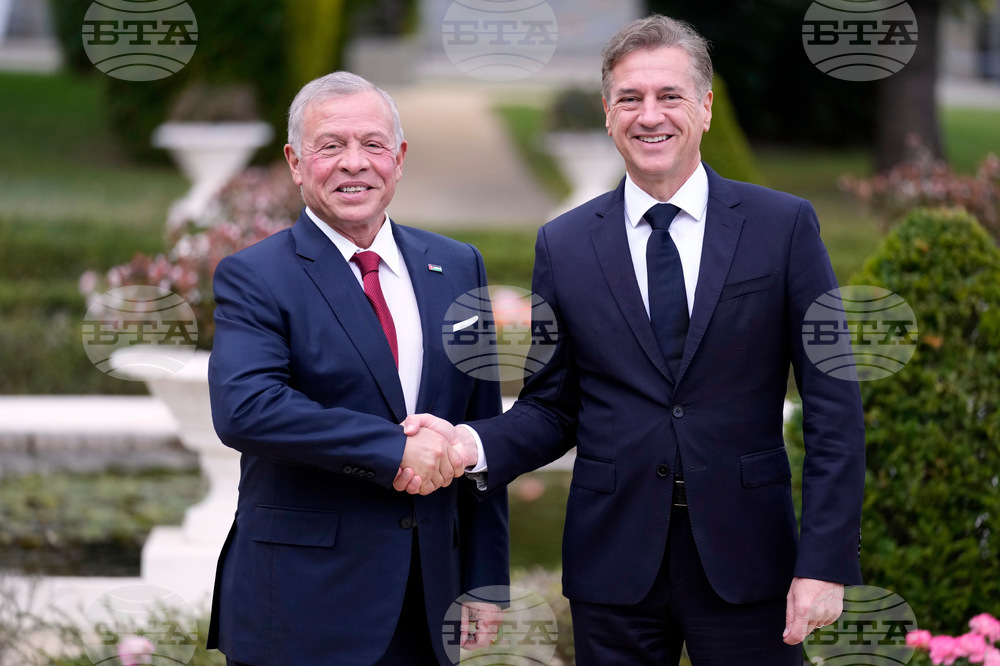 Slovenian Prime Minister Robert Golob, right, welcomes King Abdullah II of Jordan as he arrives for the summit of the informal MED9 group of the nine like-minded Mediterranean EU Member States, in Portoroz, Slovenia, Monday, Oct. 20, 2025. (AP Photo/Darko Bandic)
