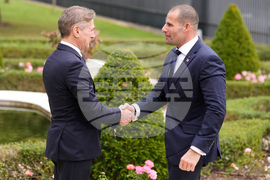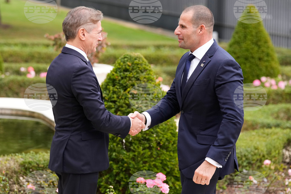 Slovenian Prime Minister Robert Golob welcomes Prime Minister of Malta Robert Abela, right, as he arrives for the summit of the informal MED9 group of the nine like-minded Mediterranean EU Member States, in Portoroz, Slovenia, Monday, Oct. 20, 2025. (AP Photo/Darko Bandic)