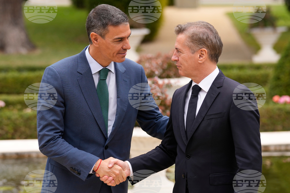 Slovenian Prime Minister Robert Golob welcomes Prime Minister of Spain Pedro Sanchez, left,, as he arrives for the summit of the informal MED9 group of the nine like-minded Mediterranean EU Member States, in Portoroz, Slovenia, Monday, Oct. 20, 2025. (AP Photo/Darko Bandic)