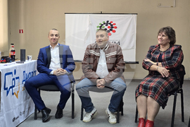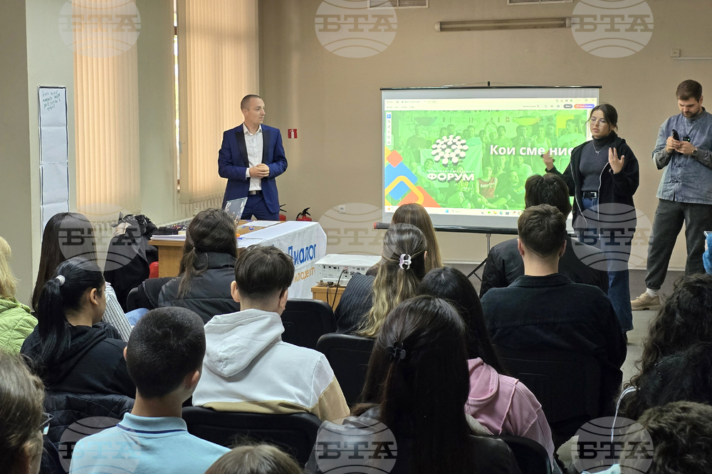Плевен (20 октомври 2025) В Плевен младежи се срещнаха с представители на местната власт и представиха свои идеи. На снимката: членът на управителния съвет на Национален младежки форум Антон Начев (вляво).
