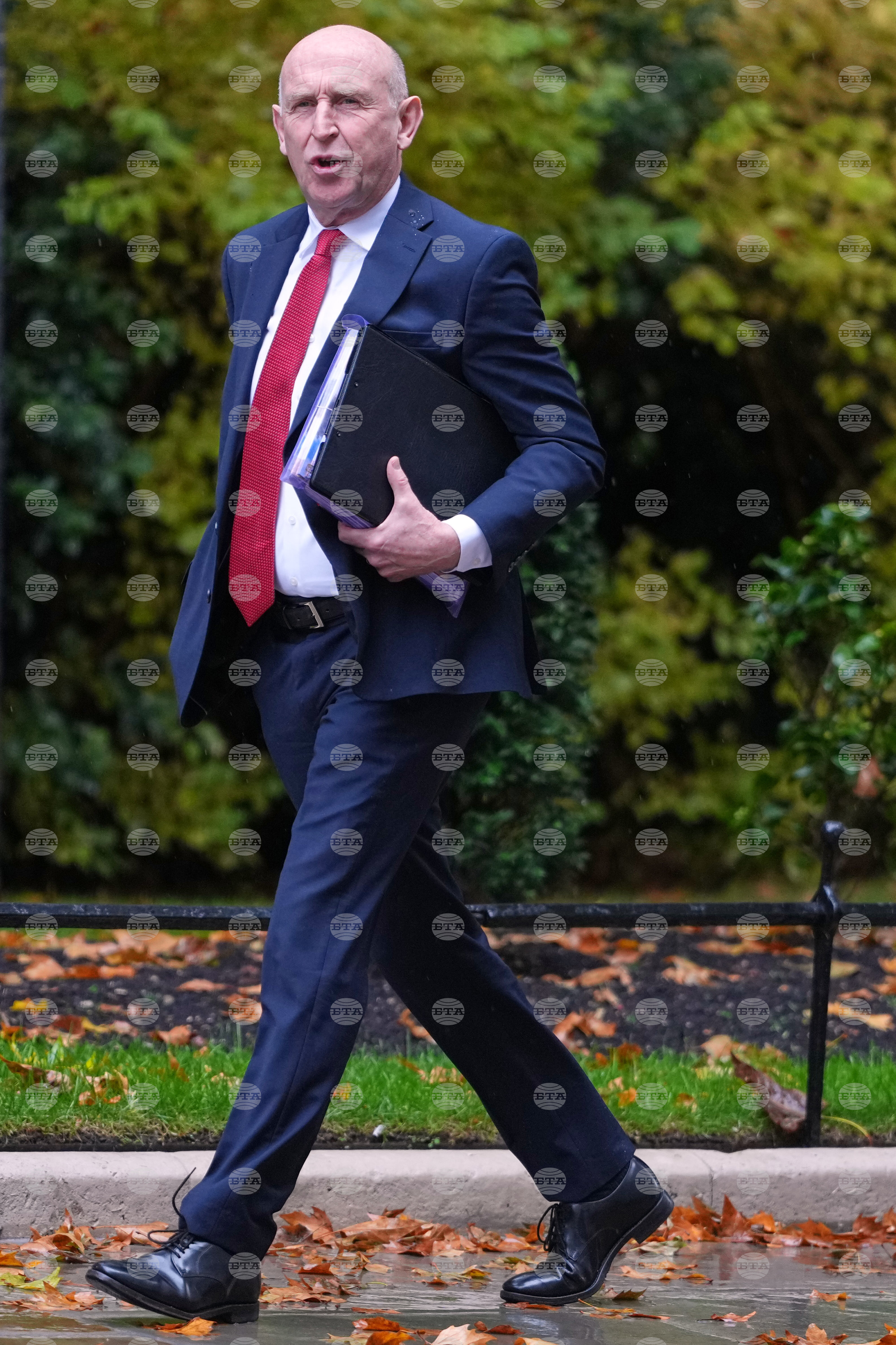 John Healey, Britain's Secretary of State for Defence arrives to attend a Cabinet meeting in Downing Street in London, Monday, Oct. 20, 2025. (AP Photo/Kirsty Wigglesworth)
