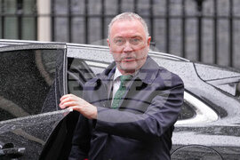 Hilary Benn, Britain's Secretary of State for Northern Ireland leaves after attending a Cabinet meeting in Downing Street in London, Monday, Oct. 20, 2025. (AP Photo/Kirsty Wigglesworth)