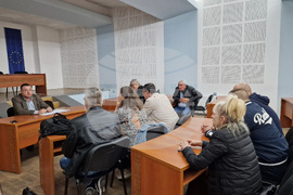 Свищов (20 октомври 2025) В Зала 1 на Община Свищов представители на Инициативен комитет „Спрете изсичането на Свищовска гора" се срещнаха с кмета на Общината Генчо Генчев (вляво), на която бяха представени причините за изграждането на възлова станция и електрическа подстанция в квартал „Симеон Ванков“ в града. Срещата бе по повод организирания протест от инициативния комитет преди дни.