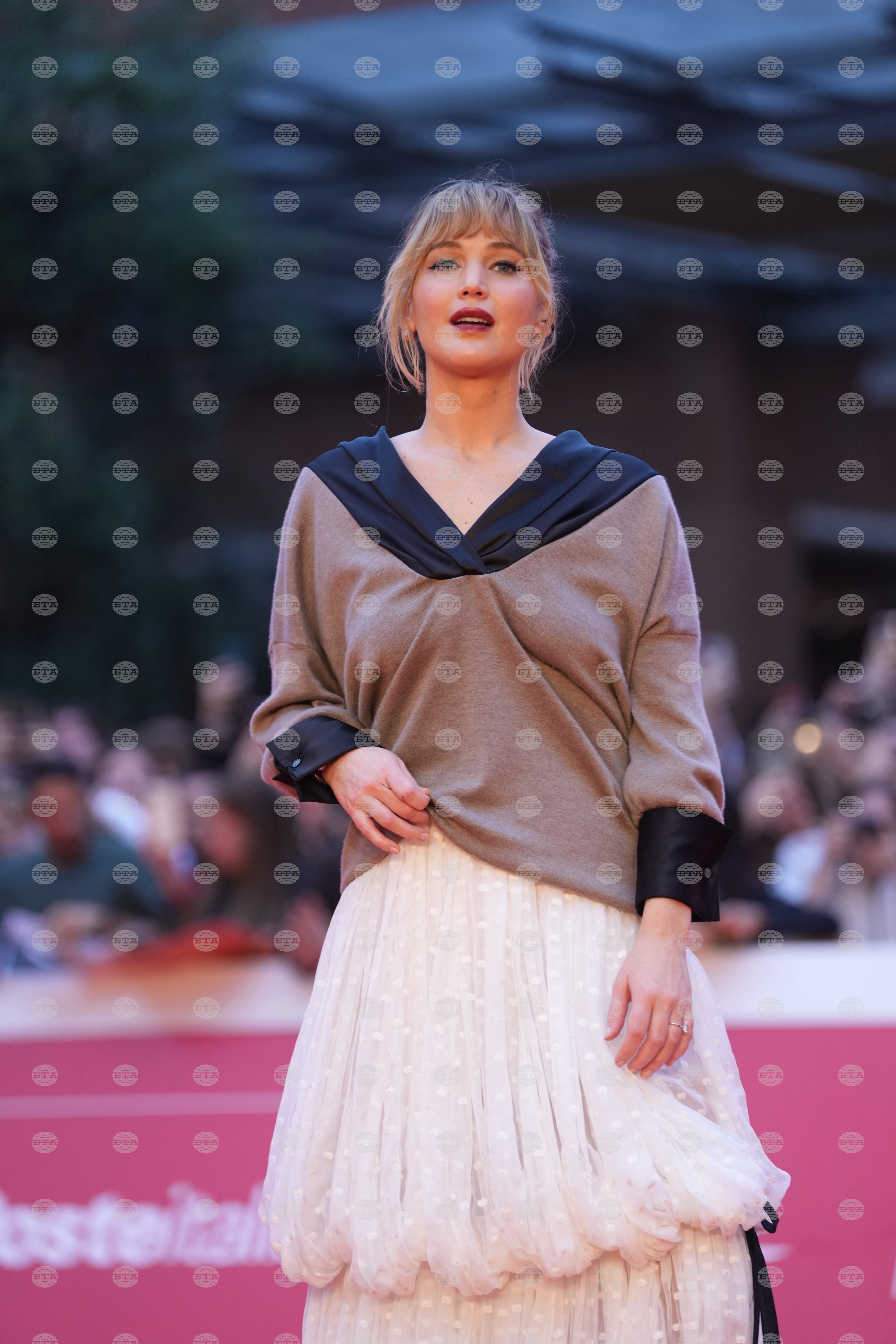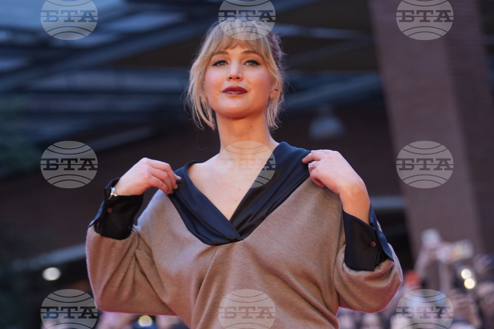 Jennifer Lawrence poses for photos on the red carpet for the movie 'Die my love' at the Rome's Film Fest in Rome, Monday, Oct. 20, 2025. (AP Photo/Domenico Stinellis)