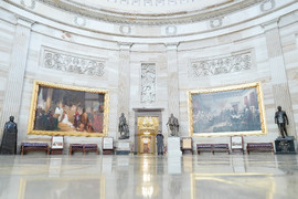 The Rotunda of the U.S. Capitol is closed to visitors Monday, Oct. 20, 2025, in Washington. (AP Photo/Mariam Zuhaib)