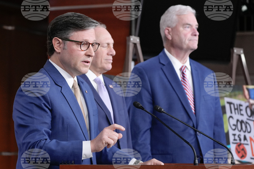 Speaker of the House Mike Johnson, R-La., joined at right by Majority Whip Tom Emmer, R-Minn., takes questions at a news conference on day 20 of the government shutdown, at the Capitol in Washington, Monday, Oct. 20, 2025. (AP Photo/J. Scott Applewhite)