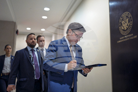 Speaker of the House Mike Johnson, R-La., arrives to hold a news conference on day 20 of the government shutdown, at the Capitol in Washington, Monday, Oct. 20, 2025. (AP Photo/J. Scott Applewhite)