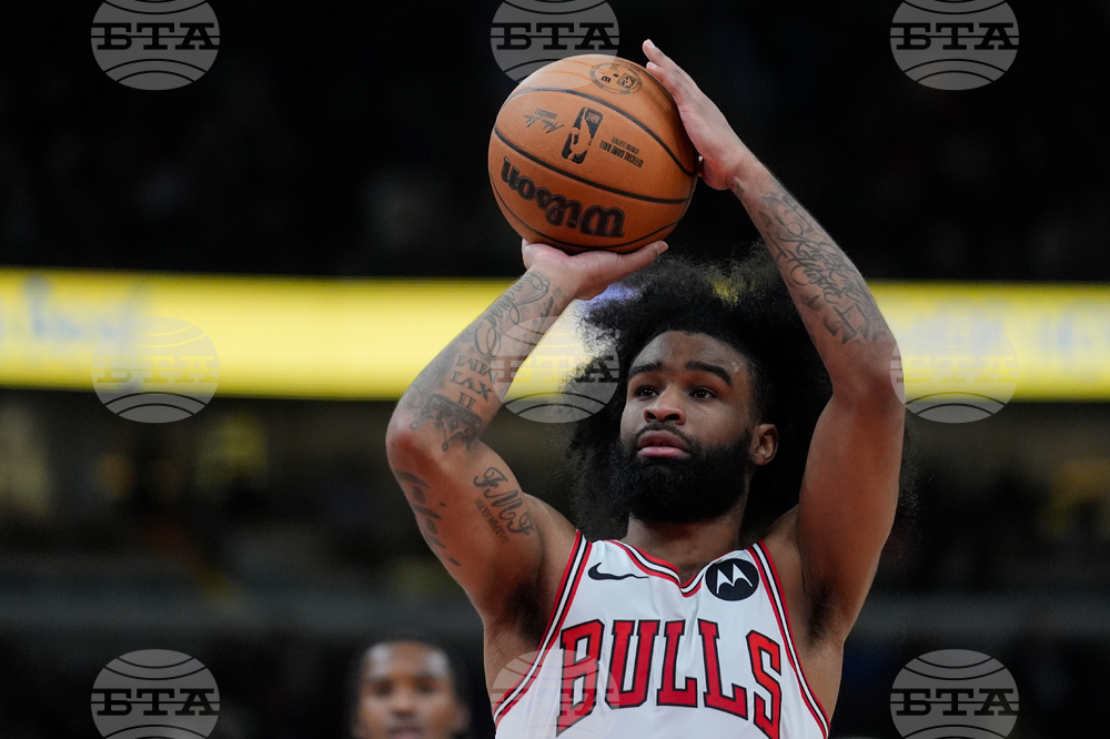 FILE - Chicago Bulls guard Coby White prepares to take a free throw during the first half of an NBA basketball game against the Cleveland Cavaliers, March 4, 2025, in Chicago. (AP Photo/Erin Hooley, File)