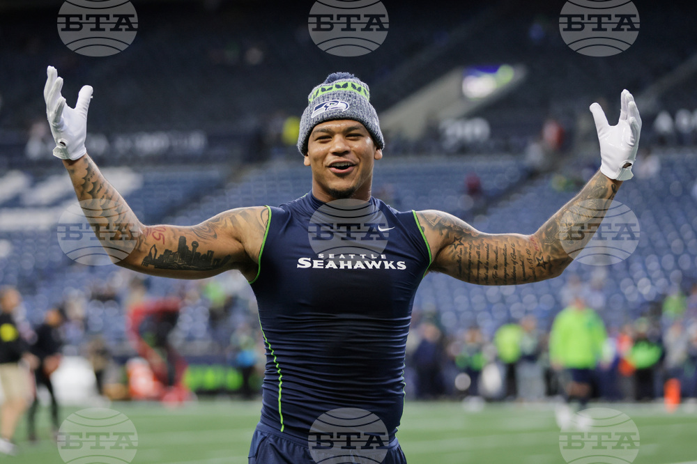 Seattle Seahawks fullback Brady Russell arrives for an NFL football game against the Houston Texans Monday, Oct. 20, 2025, in Seattle. (AP Photo/Lindsey Wasson)