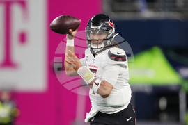 Houston Texans quarterback C.J. Stroud (7) throws a pass in the first half of an NFL football game against the Seattle Seahawks Monday, Oct. 20, 2025, in Seattle. (AP Photo/Lindsey Wasson)