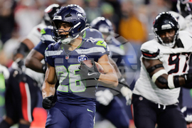 Seattle Seahawks running back Zach Charbonnet (26) runs the ball for a touchdown in the second half of an NFL football game against the Houston Texans Monday, Oct. 20, 2025, in Seattle. (AP Photo/John Froschauer)