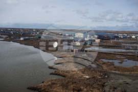 The village of Kipnuk in Western Alaska is damaged, Friday, Oct. 17, 2025, after sustaining heavy damage during the remnants of Typhoon Halong. (Marc Lester/Anchorage Daily News via AP)