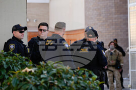 Law enforcement officers are seen outside a United States Immigration and Customs Enforcement (ICE) facility in Portland, Ore., Monday, Oct. 20, 2025. (AP Photo/Jenny Kane)