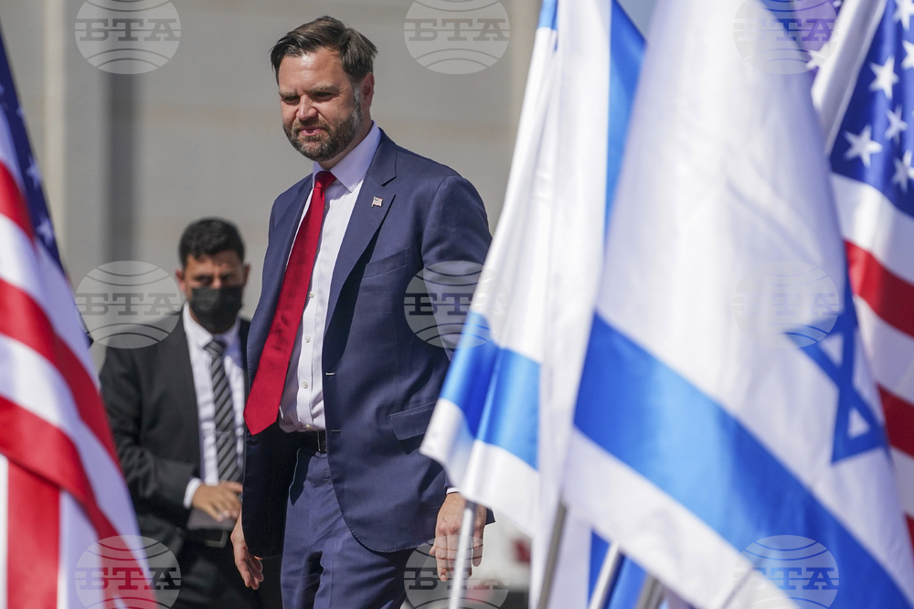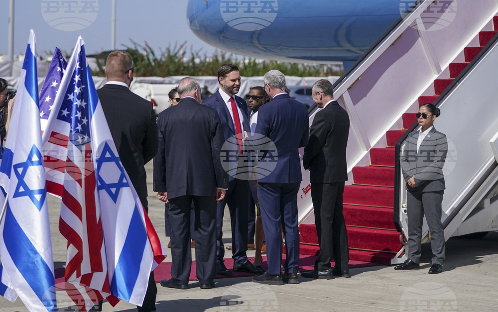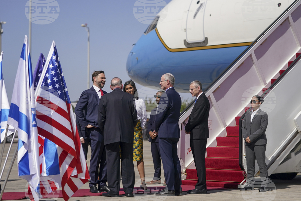 Vice President J.D. Vance arrives at Ben Gurion airport in Tel Aviv, Israel, Monday, Oct. 21, 2025. (Nathan Howard/Pool Photo via AP)