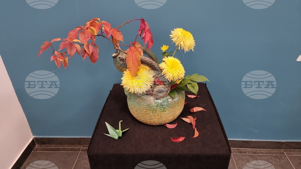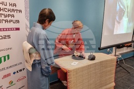 Враца (21 октомври 2025) Дни на японската култура се провеждат във Враца. Посетителите се запознаха с японските кимона и тяхната символика и присъстваха на чаена церемония. Събитието във Враца е част от програмата на 36-тите Дни на японската култура в България, които организира посолството на Япония. На снимката: преподавателят по калиграфия (вляво) и Криси Прахова и председателят на Сдружението „Урасенке“ Мивако Сан (вдясно).