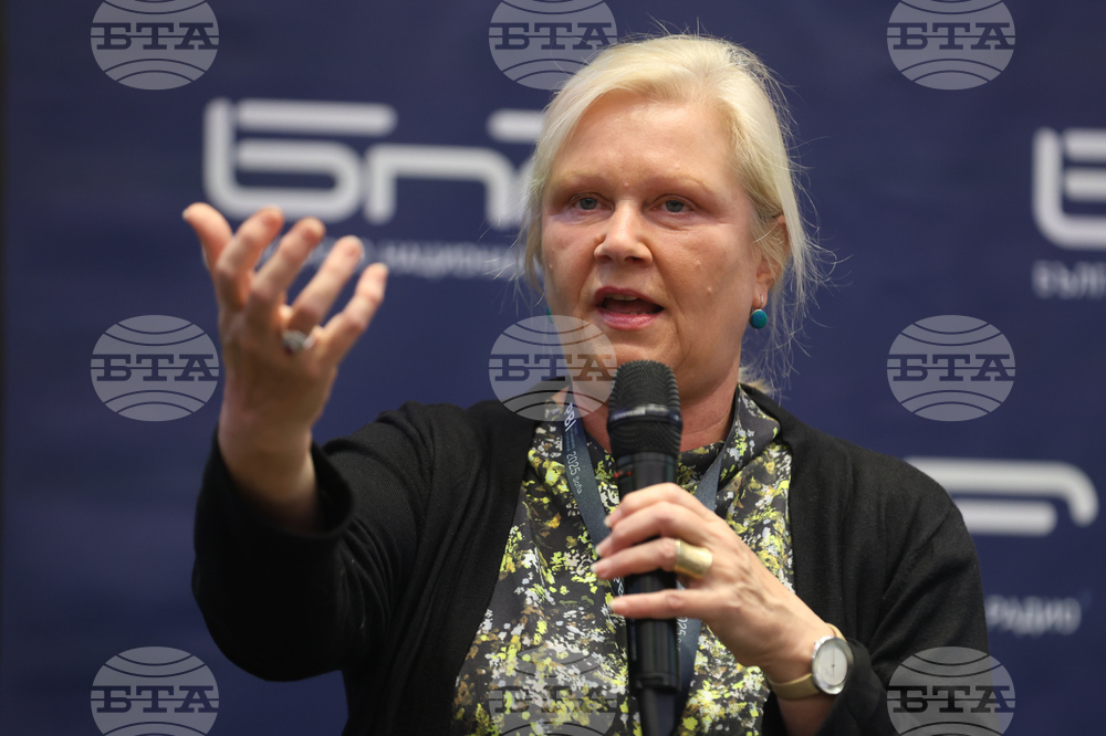 София (21 октомври 2025) Първи панел от Годишната конференция на Международната асоциация на обществените медии (Public Broadcasters International) на тема „Състоянието на обществените медии“ се провежда в зала „Васил Левски“ на хотел „Хаят Риджънси“. На снимката: председателят на управителния съвет в RTV SLO (Словения) Наталия Горшчак.