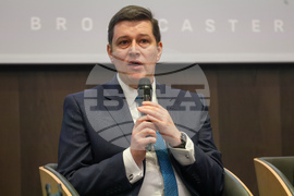 София (21 октомври 2025) Първи панел от Годишната конференция на Международната асоциация на обществените медии (Public Broadcasters International) на тема „Състоянието на обществените медии“ се провежда в зала „Васил Левски“ на хотел „Хаят Риджънси“. На снимката: телевизионният водещ и продуцент в Българска национална телевизия (БНТ) Бойко Василев.