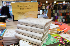 A customer picks the memoir book of Virginia Giuffre, "Nobody's Girl" at a book store in London, Tuesday, Oct. 21, 2025 six months after Giuffre died by suicide in April. (AP Photo/Kirsty Wigglesworth)