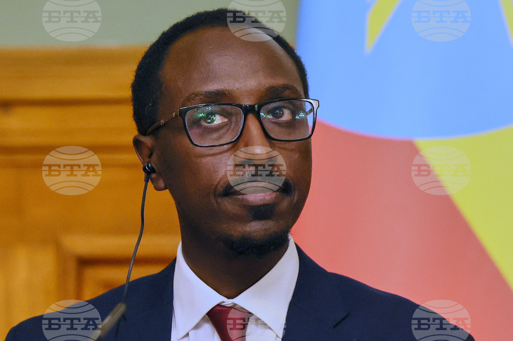 Ethiopian Minister of Foreign Affairs Gedion Timotheos attends a joint news conference with Russian Foreign Minister Sergey Lavrov following their talks at Zinaida Morozova's Mansion in Moscow, Russia, Tuesday, Oct. 21, 2025. (Shamil Zhumatov/Pool Photo via AP)