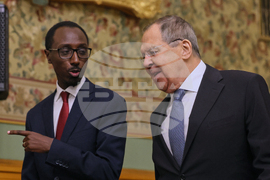 Ethiopian Minister of Foreign Affairs Gedion Timotheos, left, and Russian Foreign Minister Sergey Lavrov leave a joint news conference following their talks at Zinaida Morozova's Mansion in Moscow, Russia, Tuesday, Oct. 21, 2025. (Shamil Zhumatov/Pool Photo via AP)