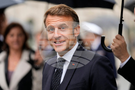President of France Emmanuel Macron attends a presentation of a Renault electric vehicle which will be produced in Slovenia, in Ljubljana, Slovenia, Tuesday, Oct. 21, 2025. (AP Photo/Darko Bandic)