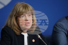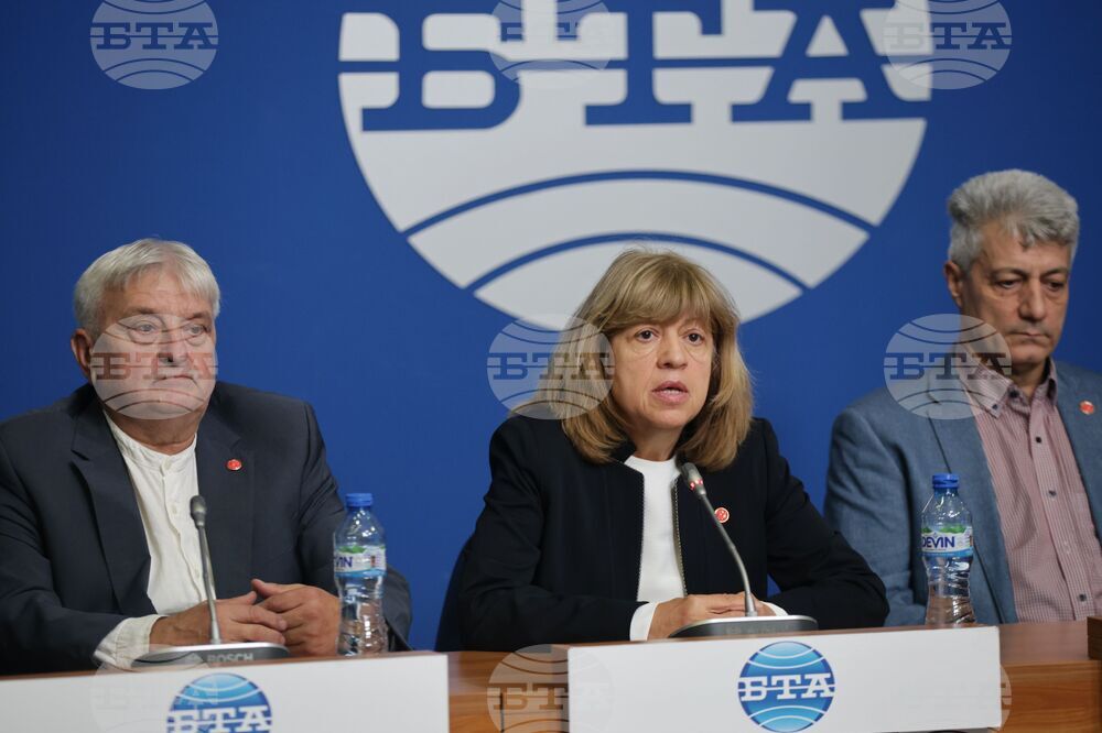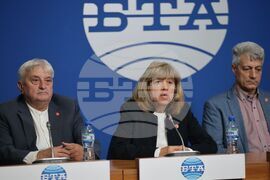 София (21 октомври 2025) В Националния пресклуб на БТА се провежда пресконференция на тема: „Политическо движение „Социалдемократи“ напуска Коалиция „БСП - Обединена левица“. Причините.“. На снимката: председателят на партията Елена Нонева (в средата).
