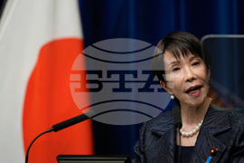Japan's new Prime Minister Sanae Takaichi leaves after attending a press conference at the prime minister's office in Tokyo, Japan, Tuesday, Oct. 21, 2025. (AP Photo/Eugene Hoshiko, Pool)